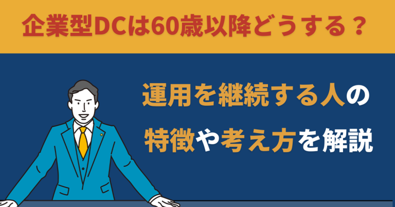 企業型DCの老齢給付金は、60歳以降、受け取るタイミングや方法を自由に選択できます。「老齢給付金をすぐに受け取るか、それとも運用指図者として運用を続けていくか」という選択に悩む人も少なくありません。 また、定年退職後も再 … 続きを読む 企業型DCは60歳以降どうする?運用を継続する人の特徴や考え方を解説