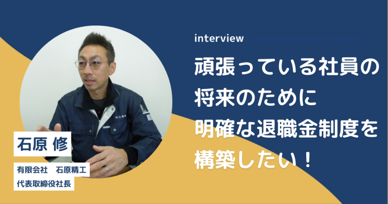 確定拠出年金制度導入前の課題 当社は今年で創業20周年を迎えますが、勤続10年を超える社員が増えてきました。今後も「社員一人一人に活き活きと働いてほしい」、そして「老後の生活への不安を持つことなく、長期にわたって働いてほ … 続きを読む 有限会社石原精工 様