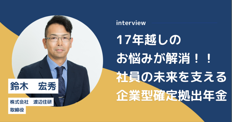 確定拠出年金 導入前のお悩み 弊社では社員の老後資金を確保するために、約17年前から『災害積立金』という制度を実施していました。この制度は、社員が毎月の給与から最大1万円を積立て、退職時には積立てたお金と同額を会社が支払 … 続きを読む 株式会社渡辺住研 様